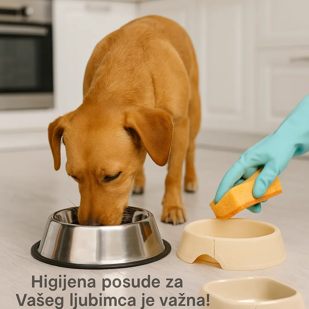 Kada kažemo najprljavije mesto u Vašem stanu, sigurno prvo pomislite na wc šolju ili nešto slično tome. Nažalost to nije tačno, postoje prljavija mesta od wc šolje, a to su sunđer za pranje posudja, truleks krpa i posuda iz koje Vaš ljubimac jede i pije vodu. Ukoliko psa hranite suvom hranom, uvek će ostati po koja mrvica u posudi, koja je idealna za razvoj bakterija i salmonela koje žive u želudcu. Mogu biti štetne za životinje isto kao i za ljude. Kako mi ljudi posle svakog našeg obroka, koji god to bio, operemo tanjir u mašini ili sa sapunicom i toplom vodom, tako bi svakodnevno posle obroka trebali da operemo i posudu našeg ljubimca. Preporučuje se da posuda bude od nerđajućeg čelika jer plastična može da pukne, a znamo da su pukotine savršeno mesto za razvoj bakterija.